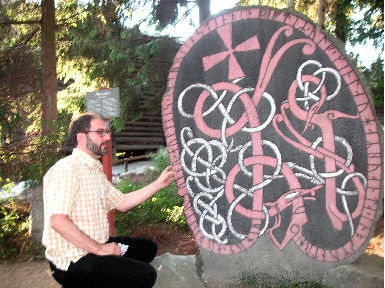 Vor dem Ölsta-Runenstein in Skansen, Stockholm, 2006.