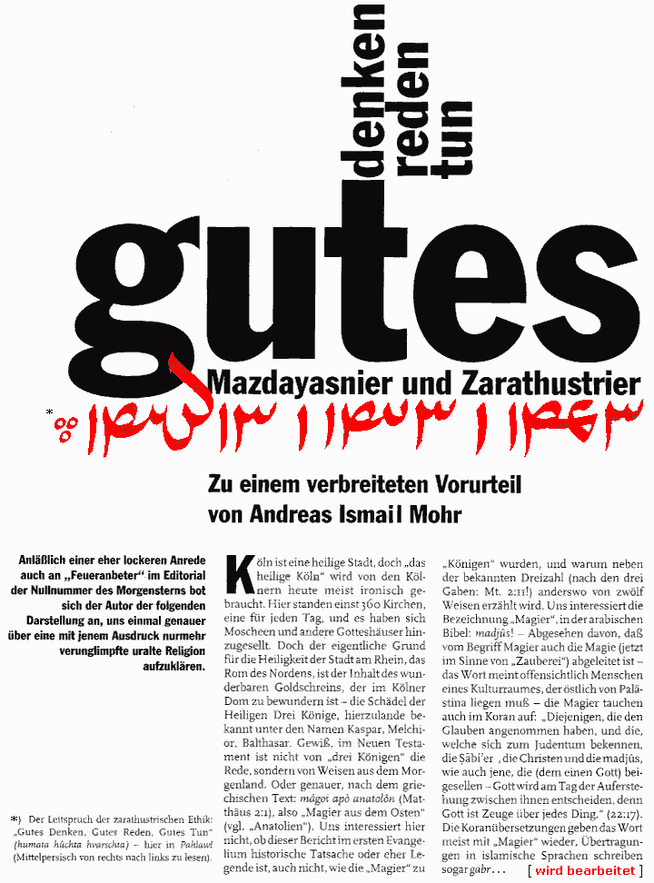 "Als Mazdayasnier und Zarathustrier..." Gutes Denken, Gutes Reden, Gutes Tun